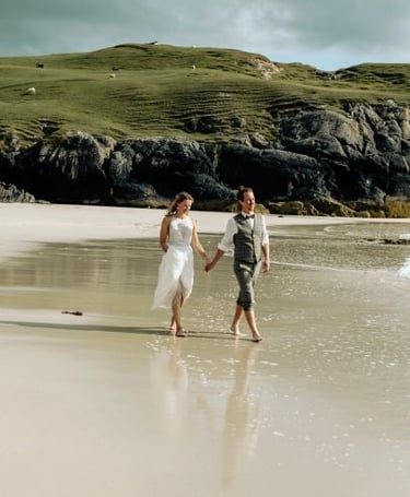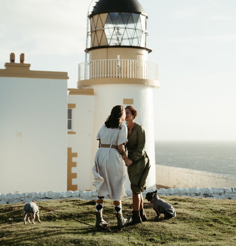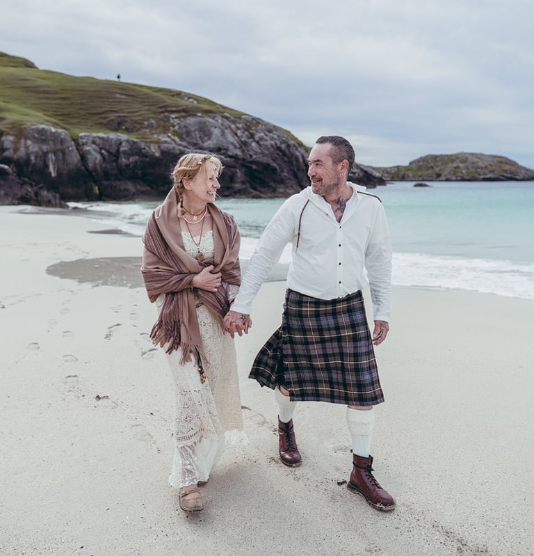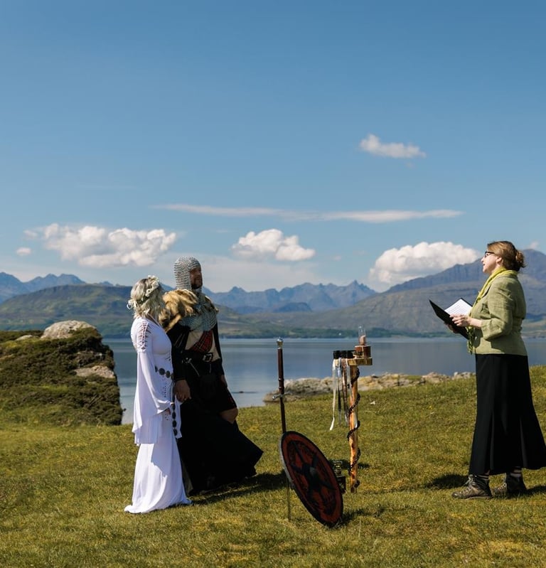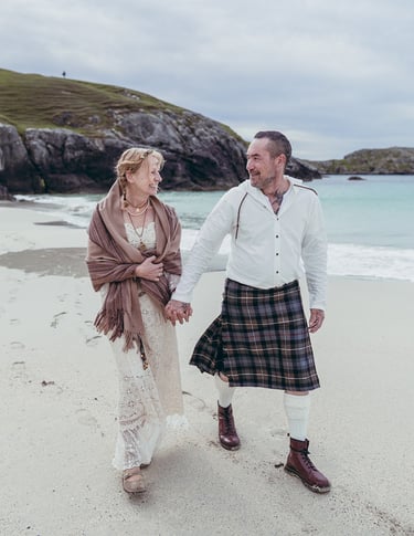 In Scotland, I can officiate legally binding weddings; beyond Scotland — in England, other parts of the UK, or across Europe — I guide you through symbolic ceremonies that are carefully planned, personal, and full of heart.